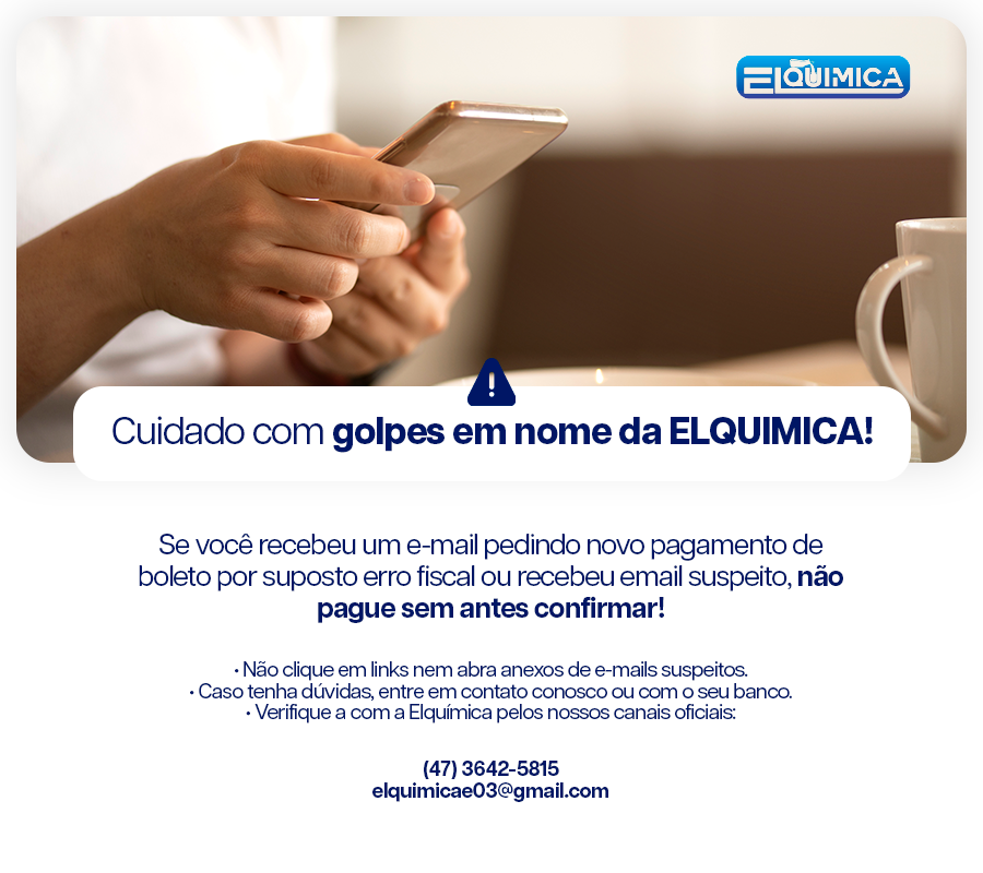 Desde sua origem, a empresa é movida pelos principios de agregar qualidade aos seus produtos, aliado a um preço justo. Presença já tradicional nas lojas voltada a produtos saneantes, automotivo e industriais, atendendo regiões do estado do Paraná e Santa Catarina, a El Química produz seu mix com elevado controle de qualidade, para com seus produtos, buscando sempre a satisfação de seus clientes e colabradores.